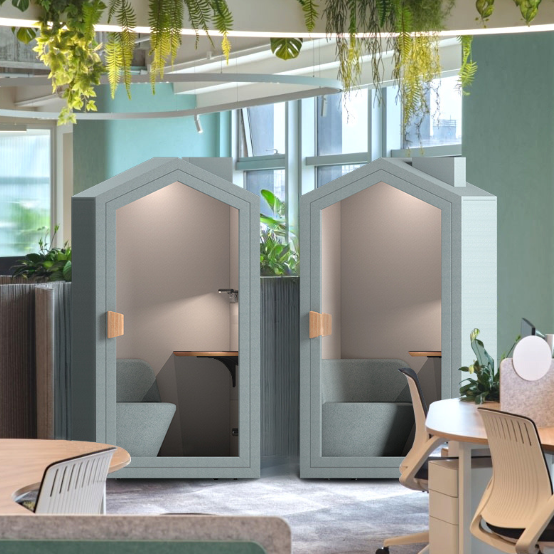 Stoelen, bureaus en akoestische pods – alles voor jouw ideale werkplek.